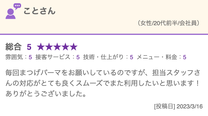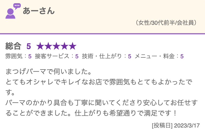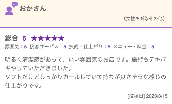 ご来店いただいたお客様より、毎日のようにお喜びの声が届いています。