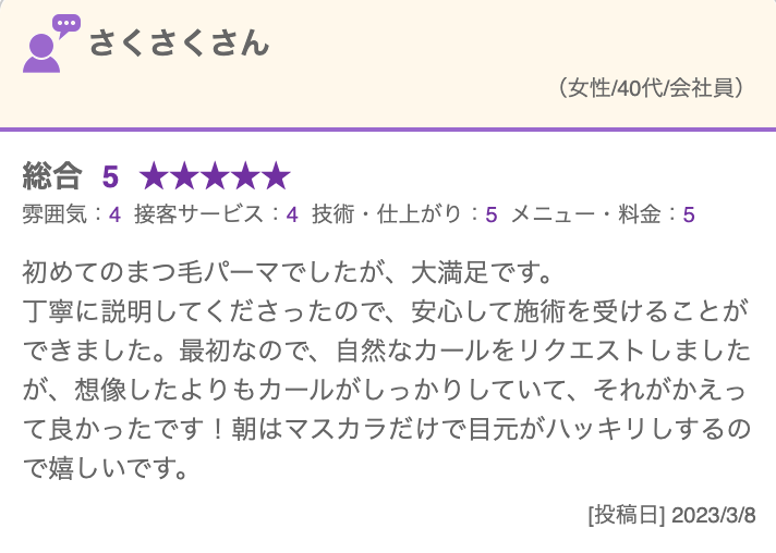 当店のまつげパーマは、豊富な種類のカールからお客様にぴったりのものをご提案します。